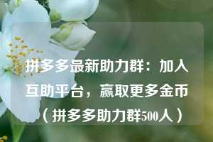 拼多多推金币活动是一种通过分享链接邀请好友助力,以获取更多金币奖励的方式。然而,很多时候我们可能会遇到邀请好友数量有限、助力效果不佳等问题。为了解决这个问题,拼多多最新助力群应运而生。在这里,你可以找到一群志同道合的朋友,共同分享链接、互助助力,轻松赢取更多金币。