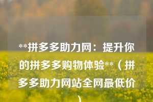 在如今电商蓬勃发展的时代,拼多多以其独特的团购模式和优惠价格吸引了大量消费者。然而,随着用户数量的不断增加,如何在众多商品中快速找到心仪的宝贝,如何在购物过程中享受更多优惠,成为了许多用户关心的问题。拼多多助力网应运而生,为广大拼多多用户提供了一个全新的购物体验平台。