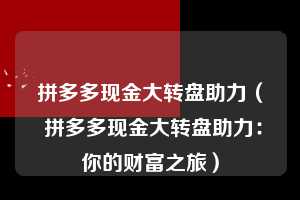 在如今的数字时代,互联拼多多助力物平台不仅为我们提供了便捷的购物体验,还通过一系列趣味横生的活动,让用户在享受购物乐趣的同时,收获实实在在的福利。拼多多,作为电商界的佼佼者,凭借其独特的拼团模式和丰富的活动,赢得了广大消费者的喜爱。其中,拼多多的现金大转盘活动更是成为了众多用户心中的“财富宝藏”。今天,我们就来深入探讨一下拼多多现金大转盘助力的奥秘,以及如何通过这一活动,轻松实现“天天领现金”的梦想。
