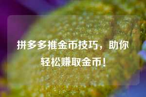 在拼多多的购物平台上,金币不仅是一种虚拟货币,更是一种可以帮助你节省成本的宝贵资源。但是,很多用户都不知道如何高效地推金币,以至于错失了许多省钱的机会。下面,我们将为大家详细介绍拼多多推金币的一些技巧,助你轻松赚取金币,享受更多优惠!